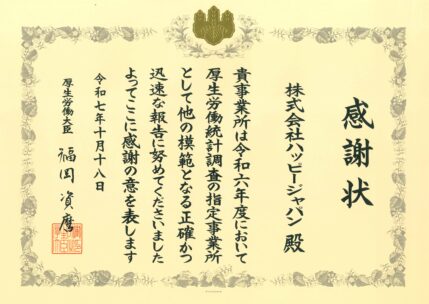令和7年度厚生労働統計功労者功績表彰を受賞しました