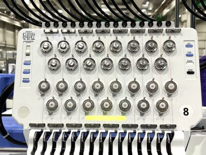 最新のシリンダータイプ工業用多頭刺繍機HCTシリーズは2頭機から12頭機までのラインナップとなっています。15針の新移動ヘッドを搭載し450×360、または450× 500mmの刺繍面積で幅広いニーズに応えます。さらに新開発の小径シリンダーによりポケットの奥など狭い部分への刺繡が可能になりました。